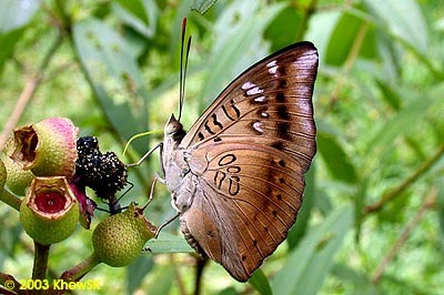 | Description | Baron is a robust butterfly, with a stout body and rather small wings. The wings are dark brown above, and paler in the larger female. There is a post-discal band on both wings, with the inner edge defined by a few small white spots. The underside is buff brown with a series of black submarginal spots on the hindwings. |