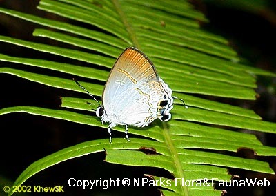 | Description | The undersides of the forewings are shaded with orange. The males are easily recognised, with the forewing an oily indigo blue and the hindwing shining blue. . It has a pair of thin threadlike tails which are white-tipped. |
