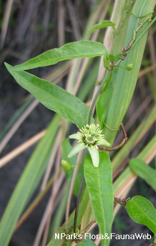 | Others - Plant Morphology | An interesting characteristic of P. suberosa is the variable shape of its leaves. From lobed to lanceolate, broad to narrow, small to large, all these different-shaped leaves are very often all found on a single plant. Flowers are small and greenish, developing into globose fruits that ripen from green to dark purplish-black and are edible. Considered by some as a weedy invasive species, P. suberosa can quickly overgrow and smother other plants, its tendrils winding around the stems and leaves of other plants in order to climb up. This enables this sun-loving plant to obtain greater exposure to sunlight. Yet, there are others who use this climber as an informal groundcover or low-climbing vine in their gardens. In addition, P. suberosa has been recognised to have ecological value, having been observed as both a butterfly nectar plant, as well as a host plant for caterpillars of butterflies including the Tawny Coster (Acraea violae), Gulf Fritillary (Agaulis vanillae), Julia Heliconian (Dryas iulia), Mexican Silverspot (Dione moneta) and Zebra Heliconian (Heliconius charithonia). It has also been observed to support other wildlife, such as birds and bees. |