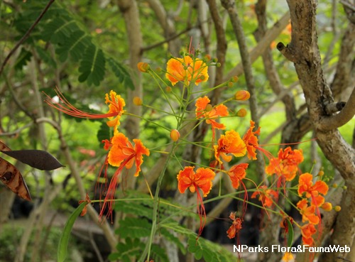 | Common Name: | Peacock Flower, Barbados Flower Fence, Flower Fence, Jambol Merak, Cana, Barbados Pride, Red Bird of Paradise, Paradise Flower, Flamboyant Tree, Gold Mohur, Pride of Barbados, Jambul Merak, 金凤花, 洋凤花, 孔雀花 |