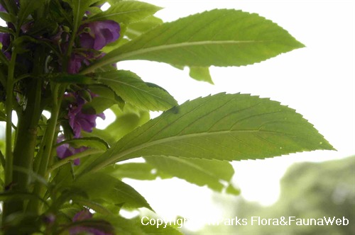 Impatiens balsamina or Garden Balsam is a annual herb that reaches to 1 m in height. Garden Balsam have elliptic to lance-shaped leaves with serrated margins and showy flowers that come in many colours; pink, red, purple. The genus, Impatiens is the latin word for impatient, referring to the explosive release of seeds from the fruit pod. They are easy to grow, tolerant of short periods of drought and with proper light, fertile well drained soil, the Garden Balsam thrives well in any gardens.