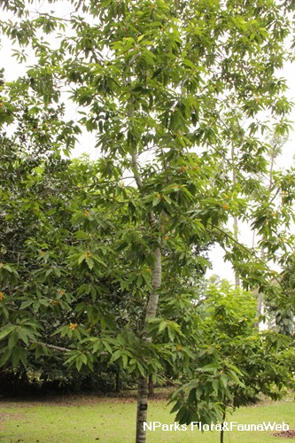 | Foliage | Leaf is elliptic or narrowly ovate (10 – 35 cm long by 4 – 11 cm wide), spirally arranged and slightly hairy on the underside. Leaf tip is short while leaf base is cuneate to rounded. There are 14 – 23 pairs of secondary veins which can be seen more visibly on the underside of the leaf. Petiole 1.5-3.5 (4) cm long. Stipules (up to 6.5 cm long) is hairy and attached to petiole for at least 0.7 – 3.9 cm long, leaving a ring-like stipular scar on the branches when it fallen. |