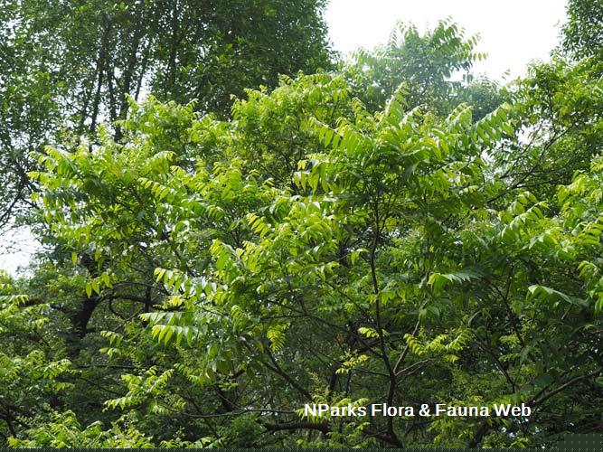 | Foliage | Its leaves are 20–61 cm long, with 7–20 pairs of leaflets. Its alternate, short-stalked leaves have thinly leathery leaf blades that are oblong-egg-shaped to lance-shaped or slightly crescent-shaped, 2–20 by 1–7 cm, and with asymmetrical bases. They also have slightly wavy or faintly notched margins. |