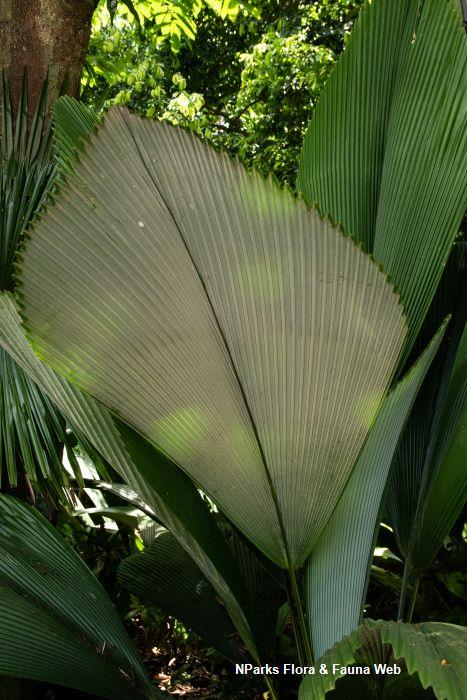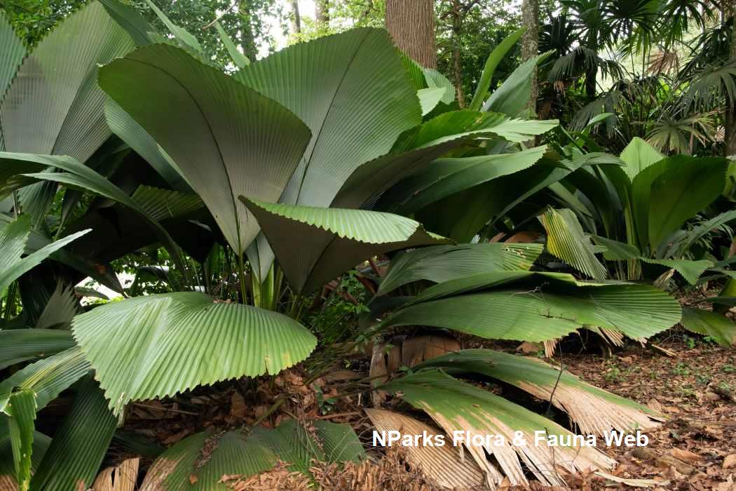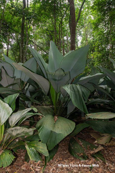 Growth Form | It is a small to medium-sized solitary palm, with fronds reaching up to 3.5 m in height. The large surface area and the rosette arrangement of the fronds might suggest a litter-trapping habit, funnelling leaf litter and debris to the base of the stem. <3> |