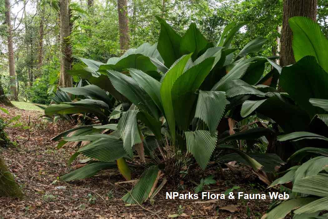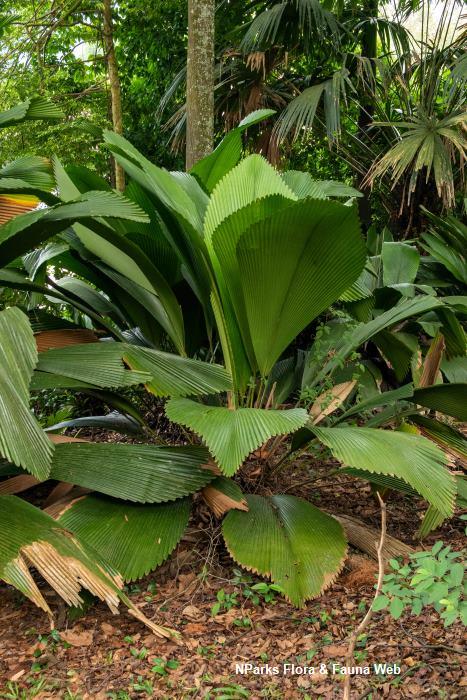 Growth Form | It is a small to medium-sized solitary palm, with fronds reaching up to 6 m in height. The palm is observed to have a litter-trapping habit, funnelling leaf litter and debris to the base of the stem. <3> |