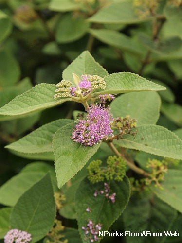 Etymology | The genus Callicarpa is derived from the Greek words 'kalli' meaning beautiful and 'karpos' meaning fruit. Species tomentosa means thickly matted with hairs. |