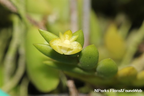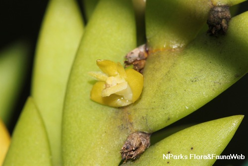 Flowers | The small flowers are borne on terminal inflorescences and have yellow sepals and petals and a yellow lip. The petals are lanceolate in shape and smaller as compared to the sepals. |