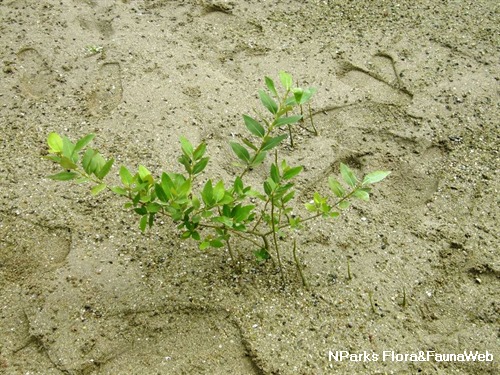 Avicennia marina, also known as Api-api Jambu, is a mangrove tree. Unlike other species, the young branches of Api-api Jambu is distinctly square shaped. The fruit is greyish green with a short beak at the tip.