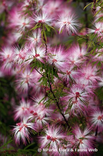 | Etymology | The genus Calliandra means beautiful-stamens (in reference to the shaving-brush tree). The specific epithet parvifolia means with small-leaves. |