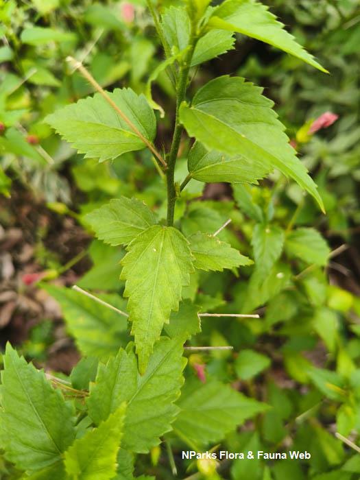 | Foliage | Leaves are egg-shaped (ovate), measuring 2 - 4 cm by 1.5 - 3 cm. Leaf base is rounded to slightly heart-shaped (cordate), leaf tip (apex) acute, toothed margin (serrate to dentate).The upper surface is sparsely hairy while lower surface is densely hairy. The petiole is 0.5 - 4 cm long with short hairs. Stipule is linear-shaped, 2 - 5 mm long and has hairs along the sides. |