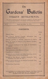Volume XVII, part 3, of this Bulletin was published on May 18th. 1960, to commemorate the 90th. birthday of Isaac Henry Burkill, Director of Gardens, Straits Settlements, from 1912 to 1925. Mr. Burkill died on March 8th. 1965, thus having almost attained the age of 95 years. In 1960 Dr. H. Santapau gave details of Mr. Burkill's early life and of his service in India before he came to Singapore, and Dr. C. X. Furtado and I collaborated in an account of his work in Singapore. The following is to be regarded as supplementing these earlier statements.