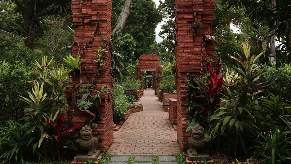 The Sang Nila Utama Garden, named after the first ancient king of Singapore, is a receation of Southeast Asian gardens of the old. Gardens were integral parts of palaces, such as the one which stood on this hill in the 14th century. The garden has traditional features typical of these spaces, such as a symmetrical layout, a series of Javanese split gates to mark different zones or realms, and a reflective pool for meditation.